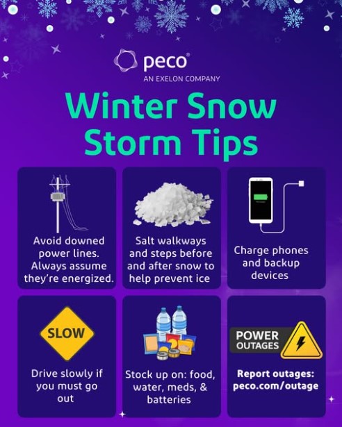 - PECO urges customers to be safe during severe weather by staying away from downed power lines and potentially damaged electric equipment.